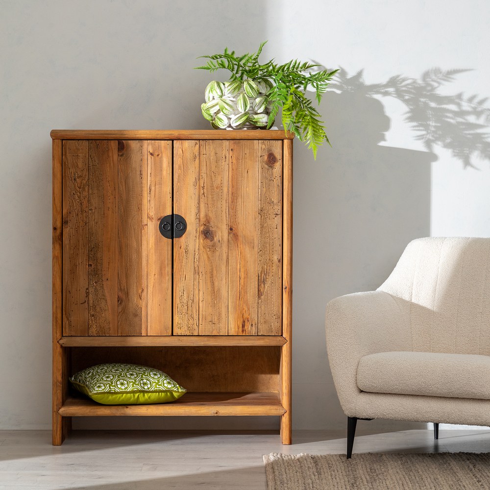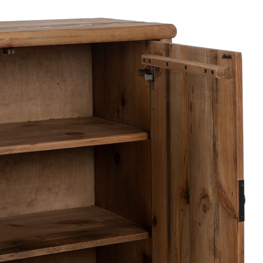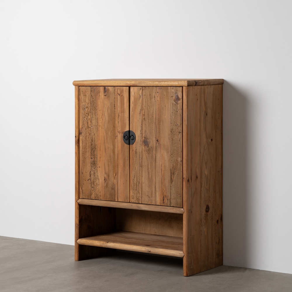 ARMARIO NATURAL MADERA DE PINO SALÓN 100 X 45 X 130 CM Material: madera de pino reciclada. Puertas: 45×80,5cm. Hueco: 90x25cm. Altura patas: 12cm.