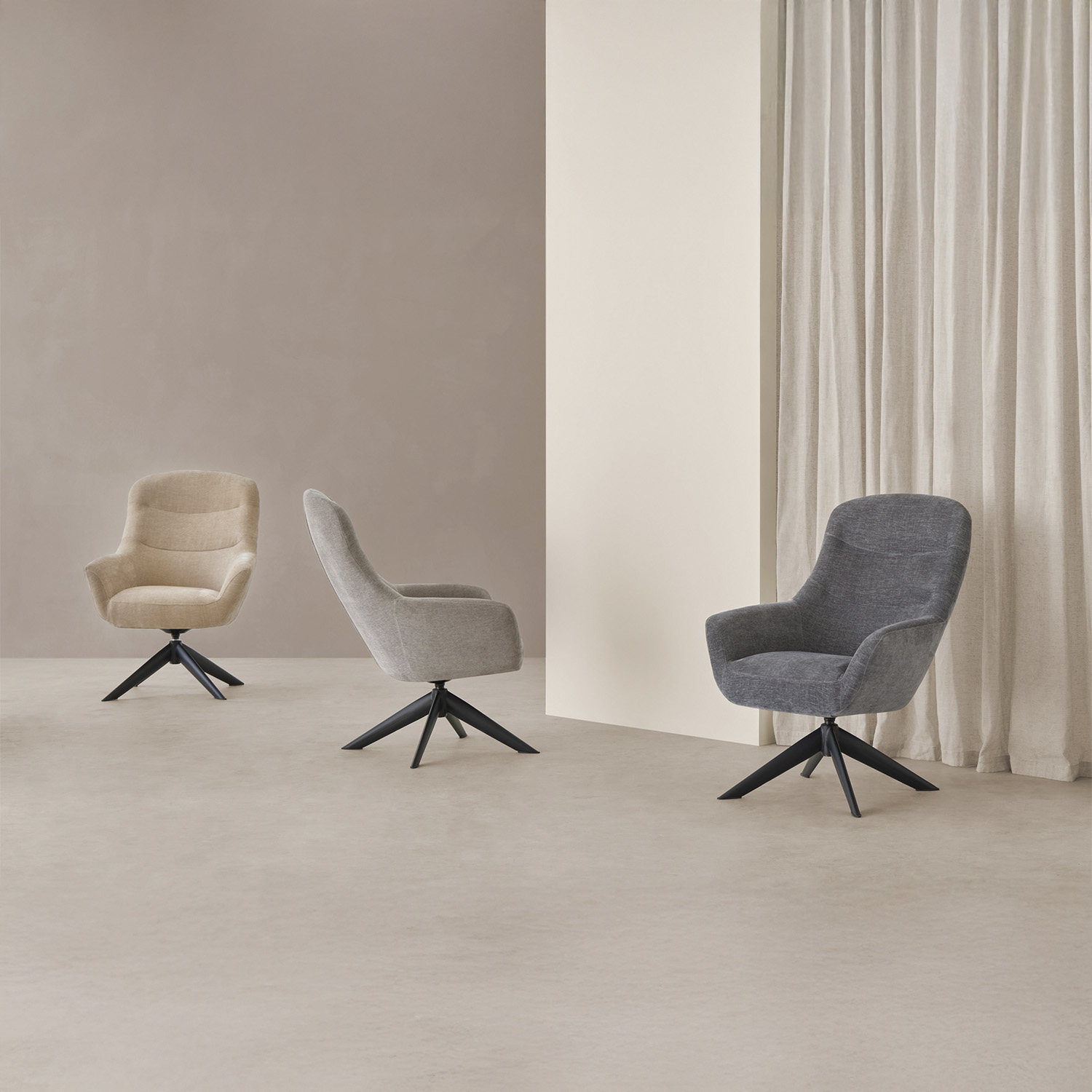 La butaca BOLONIA es el equilibrio perfecto entre estilo, confort y funcionalidad. Su tapizado en un suave tejido gris oscuro aporta frescura y modernidad, adaptándose a múltiples estilos decorativos como el minimalista, nórdico o industrial. Con una base giratoria de 360º, esta butaca añade un plus de versatilidad, permitiendo una rotación completa que facilita la movilidad y el acceso en cualquier dirección, ideal para su uso diario. La forma ergonómica de su respaldo y asiento proporciona una experiencia de descanso cómoda y envolvente, perfecta para crear un rincón acogedor en el salón, dormitorio o despacho.