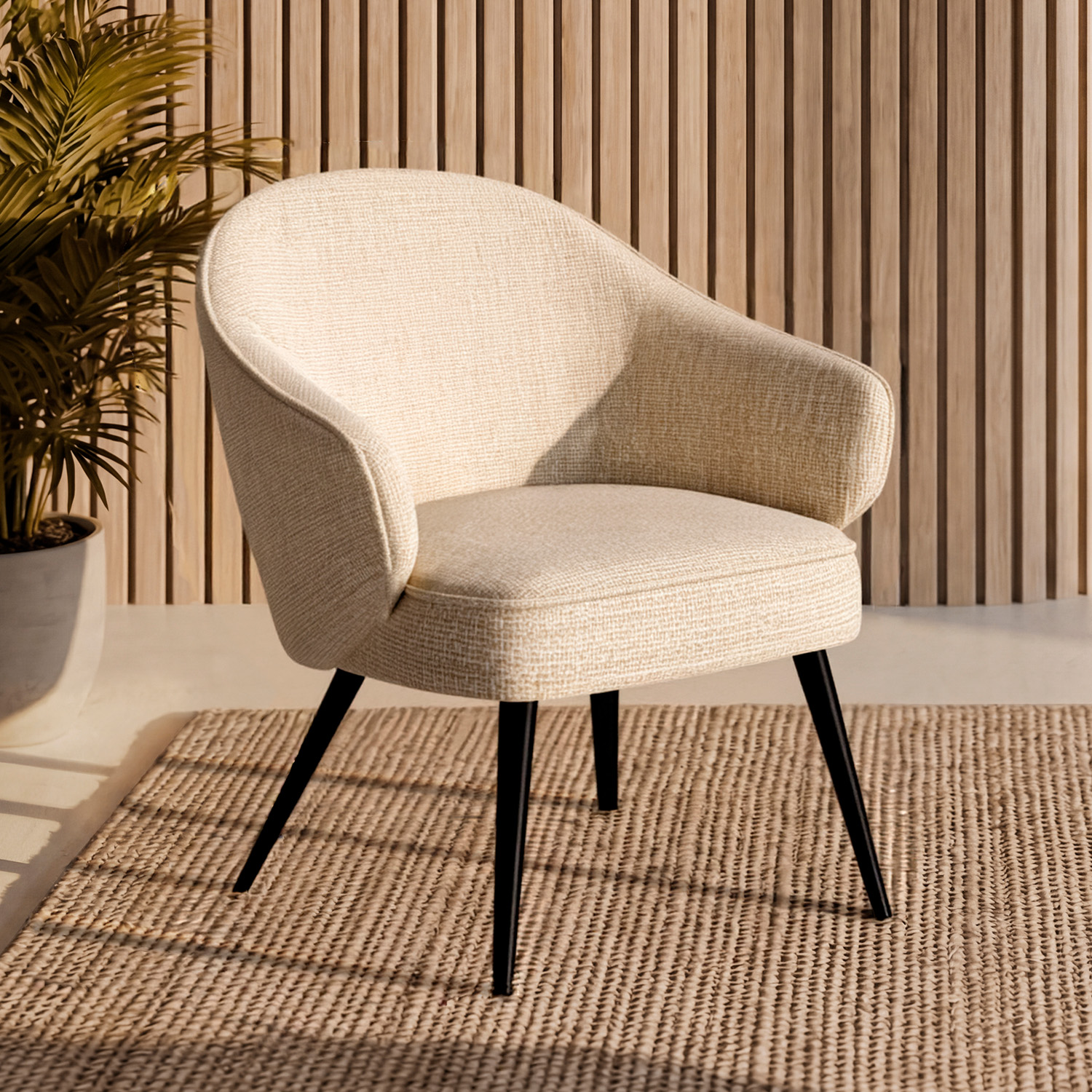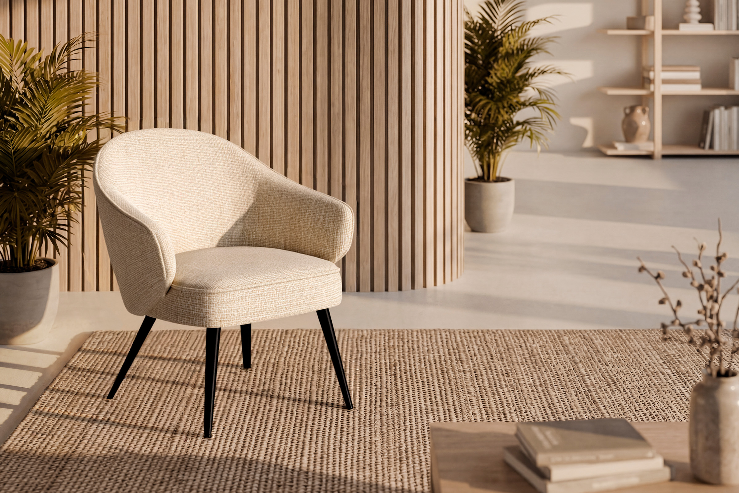 La butaca MACAO destaca por su diseño curvilíneo y envolvente, convirtiéndola en una excelente elección para ambientes modernos y acogedores. La estructura del respaldo y reposabrazos, fabricada en una única pieza, se adapta de forma ergonómica a la postura natural de la espalda, ofreciendo un soporte óptimo y una experiencia de uso confortable. El asiento acolchado, con un grosor cuidadosamente diseñado, maximiza la sensación de comodidad, permitiendo disfrutar de momentos de descanso prolongados. Por último, sus patas metálicas negras aportan un atractivo contraste con el resto del diseño, realzando el estilo sofisticado y contemporáneo de esta butaca.