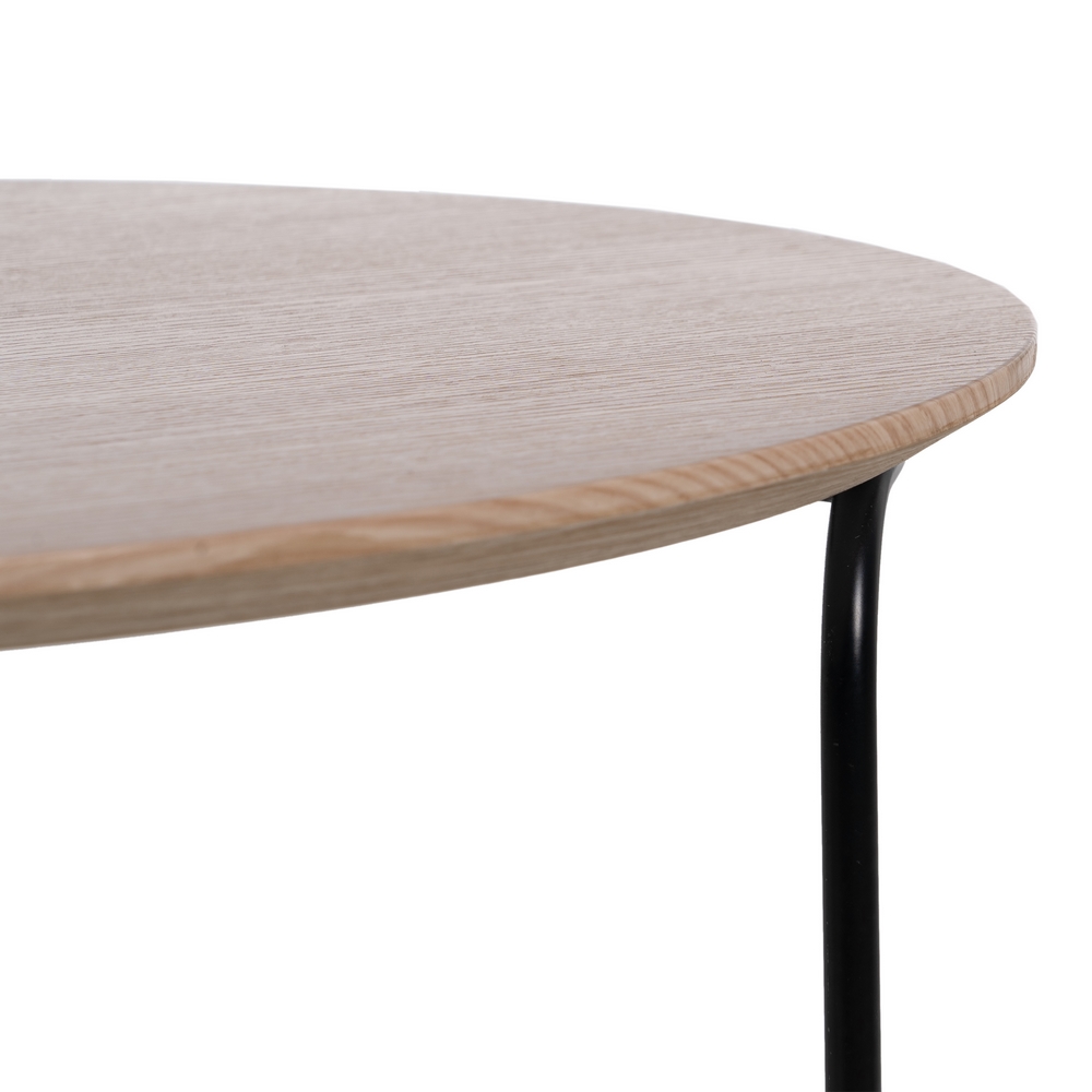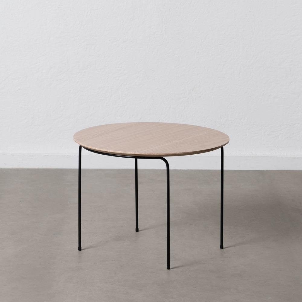 MESA CENTRO NATURAL-NEGRO DM-METAL 60 X 60 X 45 CM Material: top Dm forrado de vinilo natural imitación roble – patas de hierro Altura patas: Precista montaje.